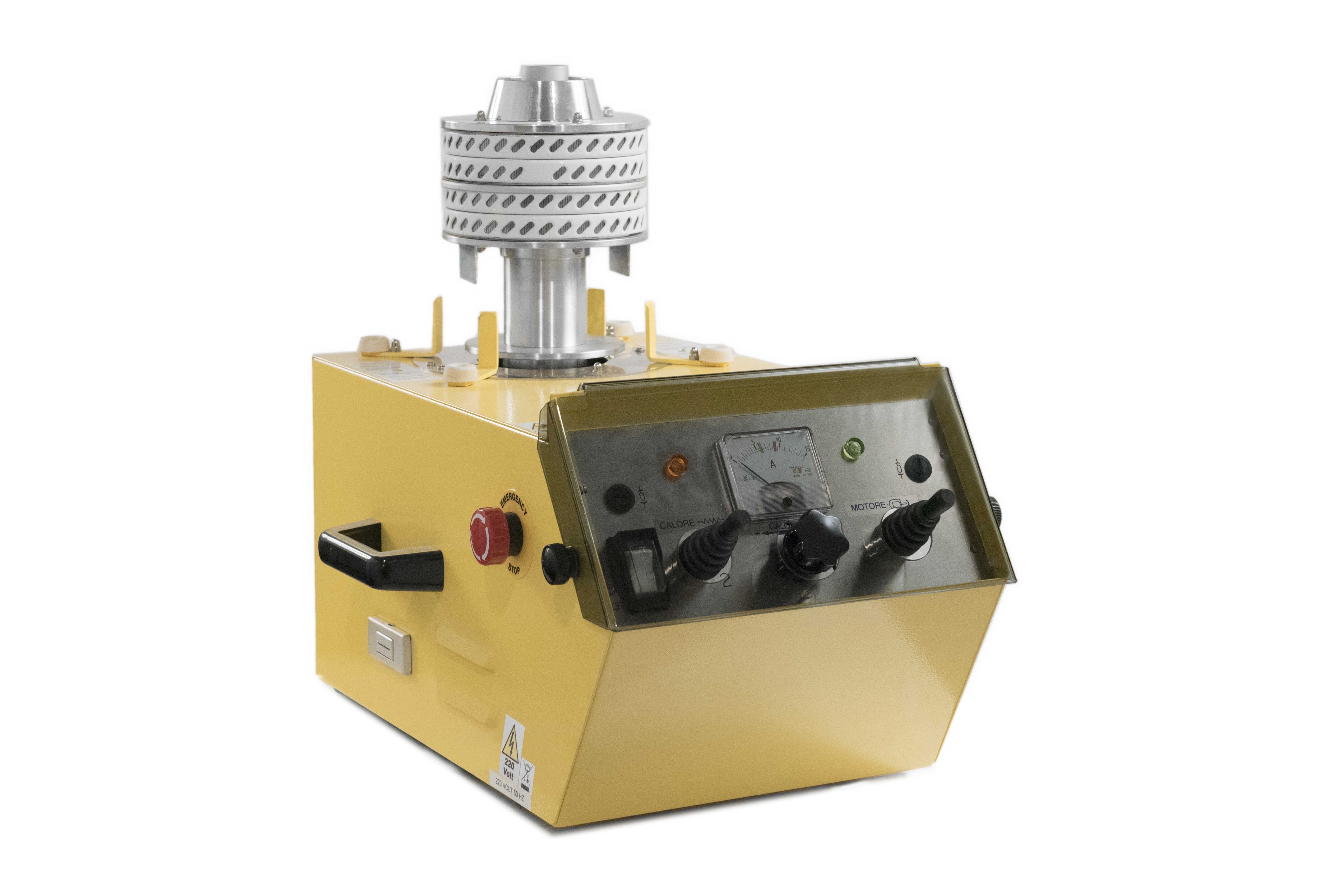 Het is uitgerust met twee verwarmingselementen, twee vergrendelingshandvatten voor veilig transport, een knop voor het instellen van de verwarmingskracht, een schakelaar voor het inschakelen van het verwarmingselement per tank en een aan/uit-schakelaar. Het wordt geleverd met zijn aluminium kom en zijn plexiglasbel.